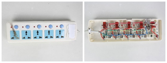 這是兩款市面上比較常見(jiàn)的多功能電源轉(zhuǎn)接器,也就是大家家中較為常見(jiàn)的排插。從表面上看來(lái)似乎毫無(wú)問(wèn)題,但是請(qǐng)大家仔細(xì)看看線材部分的對(duì)比,就可以明顯的看出合格產(chǎn)品與劣質(zhì)產(chǎn)品的區(qū)別了。