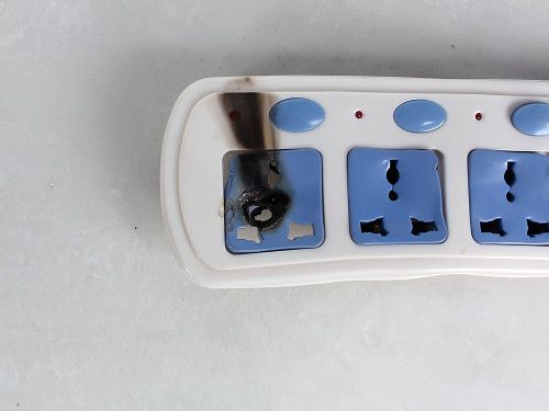 ?最后讓我們來(lái)看看一款已經(jīng)被整個(gè)燒融的排插,讓大家更清楚明白排插的選用材料的重要性。