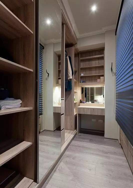 相信每個女人都想擁有一個屬于自己的衣帽間,里面放著自己喜歡的衣服、包包、鞋子,可是都說家里空間不夠,不能擁有,那你就錯了,不是只有大戶型才有衣帽間,小戶型也可以自豪說聲我也是有衣帽間的!
