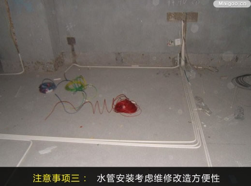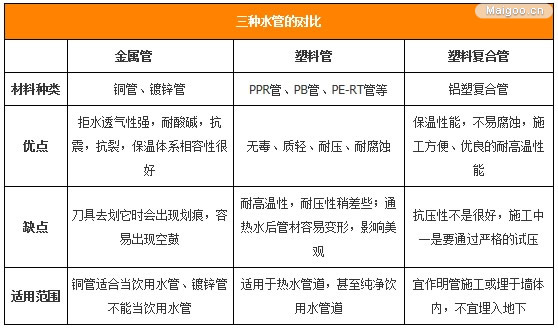遇到管路設(shè)計不合理或使用不方便,需要維修改造,選用一種方便易于維修的水管就顯得十分重要了。目前常用的有鋁塑管和純塑料管(如PVC管、PPR管),鋁塑管能用手任意彎曲不反彈,鈕接方便,用金屬探測器很容易探測到其暗埋位置,維修簡單方便;PPR管由于熱熔連接,易脆化斷裂,維修改造會影響整個管路的安全,需要非常謹(jǐn)慎。施工完成之后最好對管線排布拍照留底,方便日后檢修。'