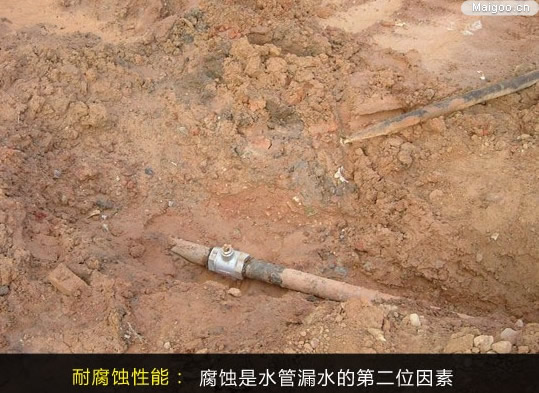 優(yōu)質(zhì)水管材料除了水管材料強(qiáng)度要足之外,還必須有很強(qiáng)的耐腐蝕性能。主要包括:耐水流腐蝕問題、耐水質(zhì)腐蝕、耐空氣腐蝕等。腐蝕是水管漏水的第二位因素,但卻是造成水管污染水源的第一位因素。
