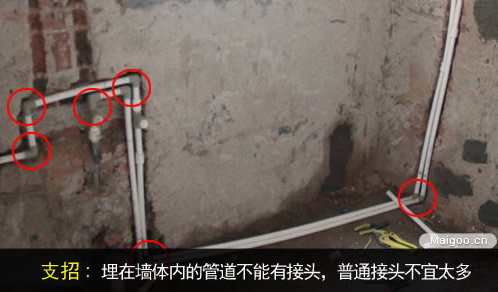 根據(jù)規(guī)定,水路管道布置時應(yīng)注意:1、埋在墻體內(nèi)的管道不能有接頭;2、所開管道槽必須經(jīng)弧線平整后作防水處理;3、固定點應(yīng)使用專用管卡。埋在墻體內(nèi)的管道有接頭,就是為日后漏水留下隱患。