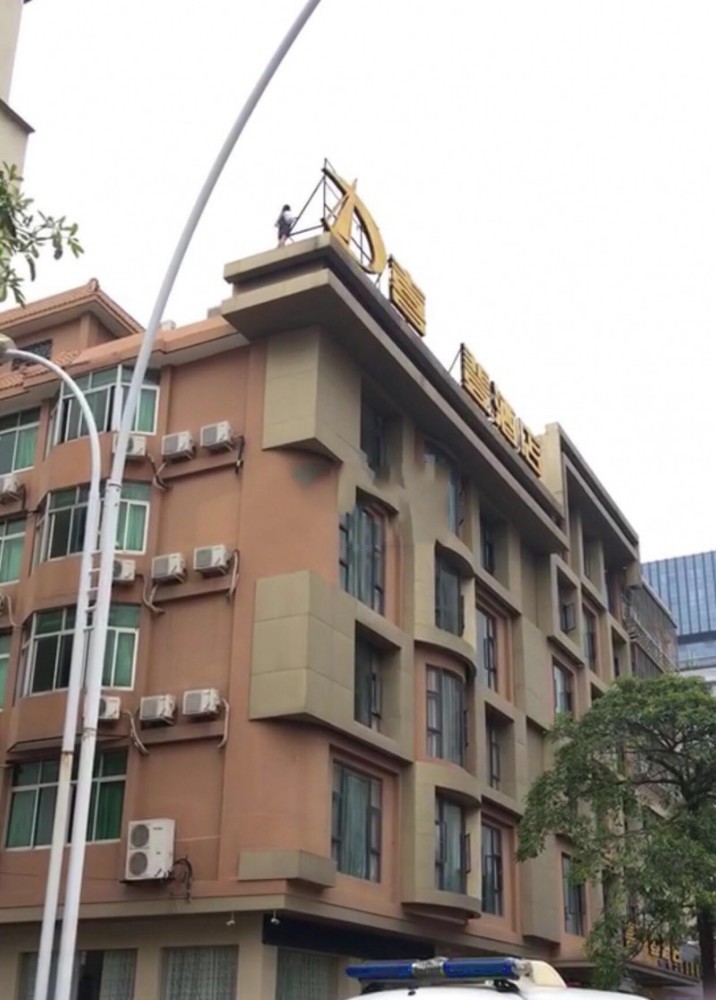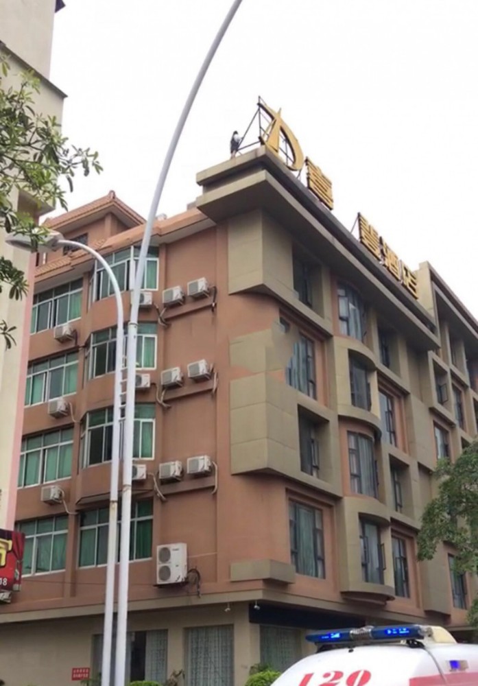 今天早上,在涵江新涵大街體育場(chǎng)某酒店房頂,疑是有位妹子在那里要跳樓。消防跟JC都來(lái)了,有什么想不開(kāi)至于這樣嗎?