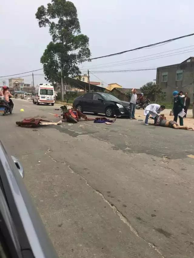 據(jù)網(wǎng)友"檸檬草"爆料:今天中午1點左右,在秀嶼區(qū)笏楓路丙侖中學(xué)往城港大道方向,發(fā)生一起嚴(yán)重的交通事故。一輛黑色現(xiàn)代轎車與一輛三輪車相撞,從網(wǎng)友供圖中可以看出,該三輪車被撞得支離破碎,而三輪車上的一男一女兩個人則被甩出車外,躺在地上一動不動,四肢變形,看樣子傷勢十分嚴(yán)重。