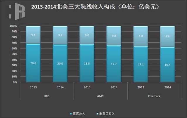 根據(jù)華誼兄弟研究院此前的一項研究,北美三大院線近兩年的票房收入占比平均數(shù)為65.6%,非票房收入占比為34.4%。萬達院線在非票房收入方面與北美的前輩們相比,雖仍有距離,但與國內同行比起來足可算得上是先進代表了。