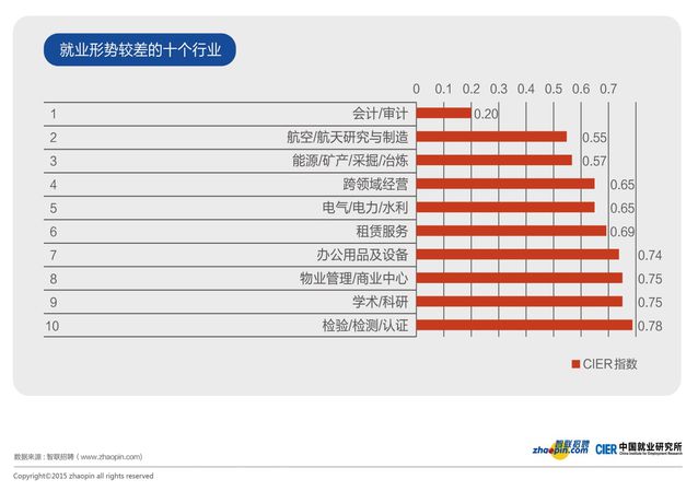 特殊化的垂直行業(yè)所遭遇挫折更大,例如專業(yè)檢驗(yàn)/檢測(cè)/認(rèn)證這一行業(yè), CIER指數(shù)只有0.78,換句話說(shuō)當(dāng)你想換工作的時(shí)候,未必有一個(gè)崗位空著,市場(chǎng)根本就沒(méi)有需求。2015年第四季度,快消、汽車/摩托車、耐用消費(fèi)品等行業(yè)需求首次出現(xiàn)負(fù)增長(zhǎng),分別為-7%、-9%和-12%。行業(yè)負(fù)增長(zhǎng)了,自然用工需求也就出現(xiàn)負(fù)增長(zhǎng)。所以這些行業(yè)的從業(yè)者,就不要輕舉妄動(dòng)了。