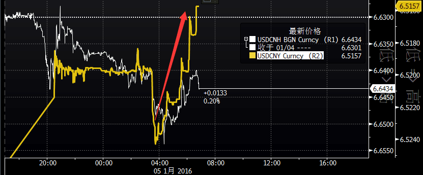 2016年開(kāi)年頭兩個(gè)交易日,離岸人民幣走勢(shì):貶值近800基點(diǎn)