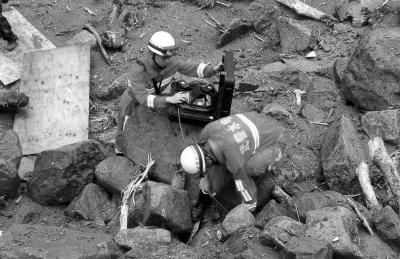 官兵利用“蛇眼生命探測儀”對任務(wù)區(qū)進(jìn)行搜救(手機(jī)拍攝)。 8日5時(shí)許,福建三明市泰寧縣開善鄉(xiāng)發(fā)生山體滑坡,造成池潭水電廠一座辦公樓被沖垮、一座項(xiàng)目工地住宿工棚被埋壓。截至20時(shí)30分,泰寧山體滑坡失聯(lián)人數(shù)增加至41人,其中屬中國水利水電十六局35人、中國水利水電十二局6人。初步了解滑坡原因,可能是近日連續(xù)大雨所致。 □突發(fā) 大型泥石流沖毀廠區(qū)辦公大樓 7日至8日,泰寧縣普降暴雨到大暴雨,局部地區(qū)24小時(shí)降雨量達(dá)191.6毫米。8日凌晨5時(shí)左右,突發(fā)10萬立方米以上大型自然災(zāi)害泥石流,泥石流沖毀了池潭水電廠擴(kuò)建工程施工單位生活營地,同時(shí)沖毀了池潭水電廠廠區(qū)辦公大樓。因時(shí)值凌晨,大部分工友都在熟睡,最初統(tǒng)計(jì)有35人失聯(lián)。截至13時(shí),已造成7人受傷。這7名工人中有兩名沒有明顯的外傷,其他5人均有不同程度的傷,一人是手外傷,一人是腳外傷,一人是腰傷,一人是髖骨骨折,還有一人是雙下肢的骨折。目前受傷的工人已經(jīng)緊急送往醫(yī)院進(jìn)行治療。 昨晚9時(shí)許,福建省三明市泰寧縣召開“5·8”泥石流自然地質(zhì)災(zāi)害新聞發(fā)布會。會上相關(guān)負(fù)責(zé)人介紹,截至晚9時(shí),泰寧山體滑坡失聯(lián)人數(shù)增加至41人,其中屬中國水利水電十六局35人、中國水利水電十二局6人。事故發(fā)生后,新增的5名傷員不在失聯(lián)人員名單當(dāng)中。目前救援仍在緊張進(jìn)行。 泰寧縣旅游管委會研究決定,從5月8日7時(shí)起,泰寧縣所有景區(qū)暫時(shí)關(guān)閉。泰寧縣旅游管委會表示,請游客不要前往景區(qū),景區(qū)開放時(shí)間另行通知。 國土資源部啟動地質(zhì)災(zāi)害Ⅱ級應(yīng)急響應(yīng) 三明市泰寧縣山體滑坡發(fā)生后,國土資源部立即召開緊急會議,研究部署落實(shí)黨中央、國務(wù)院領(lǐng)導(dǎo)批示精神。國土資源部聯(lián)合民政部(國家減災(zāi)委)、水利部(國家防辦)、國資委、國家安監(jiān)總局成立國務(wù)院工作組,指導(dǎo)地方做好救援工作。目前工作組各成員正陸續(xù)趕赴災(zāi)害現(xiàn)場。 國土資源部第一時(shí)間啟動地質(zhì)災(zāi)害Ⅱ級應(yīng)急響應(yīng),專家組趕赴災(zāi)害現(xiàn)場,提供技術(shù)支持,協(xié)助指導(dǎo)地方政府開展地質(zhì)災(zāi)害應(yīng)急調(diào)查。國土資源部要求福建省國土資源廳進(jìn)一步了解核實(shí)災(zāi)情,包括災(zāi)害性質(zhì)、人員傷亡等。要千方百計(jì)施救失聯(lián)人員,對災(zāi)害周邊區(qū)域進(jìn)行全面排查,劃定危險(xiǎn)區(qū),加強(qiáng)監(jiān)測預(yù)警,嚴(yán)防二次災(zāi)害。 □追問 是否大雨導(dǎo)致山體滑坡? 初步了解滑坡原因,可能是近日連續(xù)大雨所致。來自福建省泰寧縣政府的消息,7日至8日,泰寧縣普降暴雨到大暴雨,局部地區(qū)24小時(shí)降雨量達(dá)191.6毫米。 8日凌晨5時(shí)左右,突發(fā)10萬方以上大型自然災(zāi)害泥石流,泥石流沖毀了池潭水電廠擴(kuò)建工程施工單位。 失蹤的是哪些人員? 來自福建省泰寧縣政府的消息,失蹤人員參與的是池潭水電廠擴(kuò)建工程,其施工單位為中水十六局、中水十二局。8日凌晨5時(shí)左右,泥石流沖毀了生活營地,及池潭水電廠廠區(qū)辦公大樓。因時(shí)值凌晨,大部分工人都在熟睡。 目前救援情況如何? 據(jù)了解,三明市組織市級和相鄰縣醫(yī)院的16輛救護(hù)車及60多名醫(yī)務(wù)人員到現(xiàn)場救援,相關(guān)醫(yī)院已安排搶救室、醫(yī)務(wù)人員和16萬毫升血液血漿等候急救;市、縣消防部隊(duì)已調(diào)集13輛車和100多名消防官兵攜帶生命探測儀等施救設(shè)備展開救援,300多名縣、鄉(xiāng)干部在現(xiàn)場參與施救,另有40余臺工程機(jī)械正趕往現(xiàn)場。 武警交通部隊(duì)迅速啟動應(yīng)急預(yù)案,派出駐福州的一大隊(duì)86名專業(yè)救援兵力,攜帶推土機(jī)、挖掘機(jī)等30臺大型裝備及生命探測儀等趕赴現(xiàn)場救援;同時(shí),武警交通指揮部、武警交通三總隊(duì)同期派出兩路應(yīng)急救援技術(shù)專家組,分別從北京、合肥趕赴一線,為受災(zāi)群眾和救災(zāi)部隊(duì)提供技術(shù)支持和后勤保障。 8日下午5時(shí)許,記者隨武警部隊(duì)徒步到達(dá)事發(fā)現(xiàn)場,看到武警、消防官兵及當(dāng)?shù)鼐仍α康任辶偃苏诰o張施救,十多輛挖掘機(jī)在現(xiàn)場挖掘。 事故現(xiàn)場地面上隨處可見大石頭、泥土,以及彎曲的鋼筋,搜救犬正在搜尋失聯(lián)人員。據(jù)現(xiàn)場的武警戰(zhàn)士介紹,武警部隊(duì)采取機(jī)械加人工的辦法,正在現(xiàn)場積極展開救援。在事故現(xiàn)場,停著十多輛救護(hù)車和部隊(duì)車輛,隨時(shí)準(zhǔn)備救援。目前,雨時(shí)斷時(shí)續(xù),給救援帶來了很大的困難。
